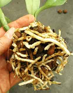 away the old decaying roots and wash system again. | | | | | | |  Old roots on left have